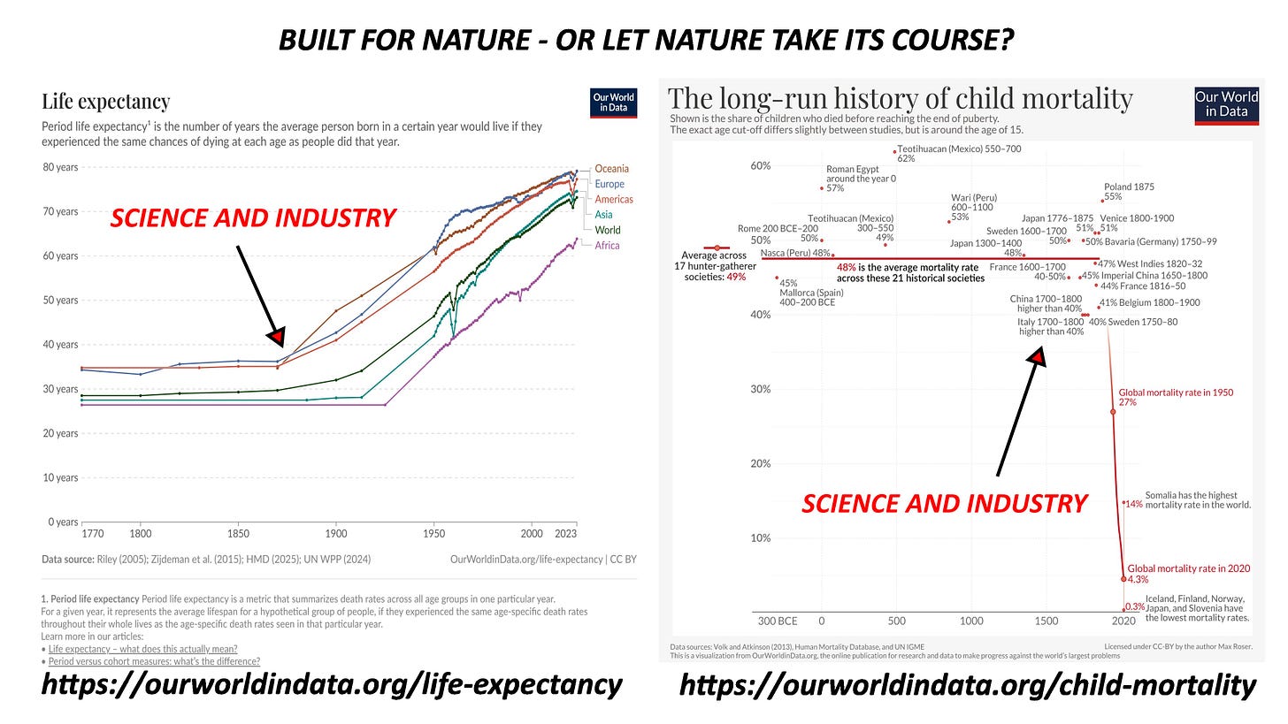 I understand the romantic idea that humans are ‘built for nature’ . But the reality is that every major improvement in human well-being has come from doing things nature never intended. If we had to confine ourselves to what was ‘natural,’ most would not have survived childhood,1 let alone lived into our 60s, 70s or 80s. 2